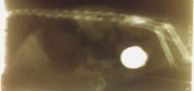 Der Blasenstein ist deutlich sichtbar und abgrenzbar zur Knochensubstanz. Es ist klar dass hier typische Symptome viel zu spät erkannt wurden bzw. richtig gedeutet wurden und aus diesem Grund der Blasenstein erst zu dieser enormen Größe anwachsen konnte. Ein rechtzeitiger Tierarztbesuch mit dem betroffenem Meerschweinchen erfolgte leider nicht.